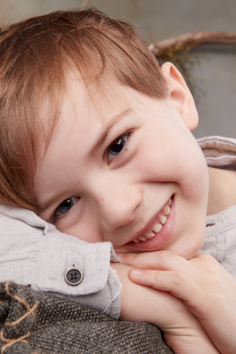 Empfehlenswert sind unifarbene Oberteile ohne großen Aufdruck. Zu viele Farben machen das Bild unruhig. Wichtig ist aber auch, dass sich Ihr Kind wohlfühlt. Wenn es also am Fototag das Superhelden-Sweatshirt anziehen möchte, um gut gelaunt in den Tag zu starten, dann soll es das gerne so machen.